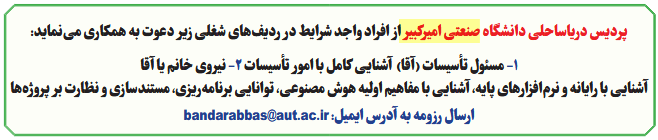 ارسال رزومه به آدرس ایمیل: bandarabbas@aut.ac.ir