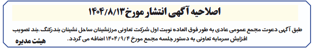 اصلاحیه آگهی انتشار مورخ13/8/1404