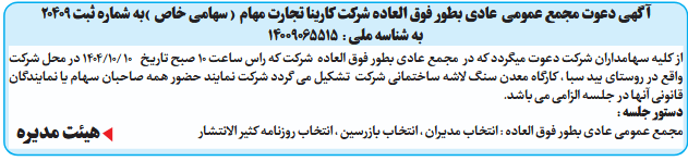 آگهی دعوت مجمع عمومی عادی بطور فوق العاده