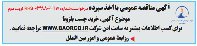 آگهی مناقصه عمومی نوبت دومموضوع آگهی: خرید چسب بلزونا
