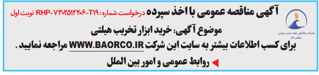 برای کسب اطلاعات بیشتر به سایت این شرکت WWW.BAORCO.IR مراجعه نمایید .
