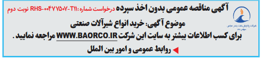 برای کسب اطلاعات بیشتر به سایت این شرکت WWW.BAORCO.IR مراجعه نمایید .