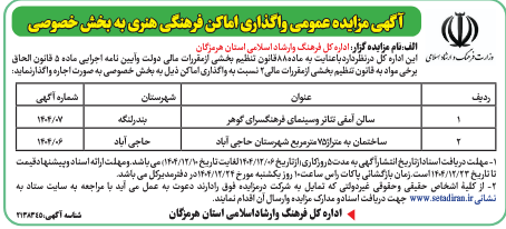 آگهی مزایده عمومی واگذاری اماکن فرهنگی هنری به بخش خصوصی