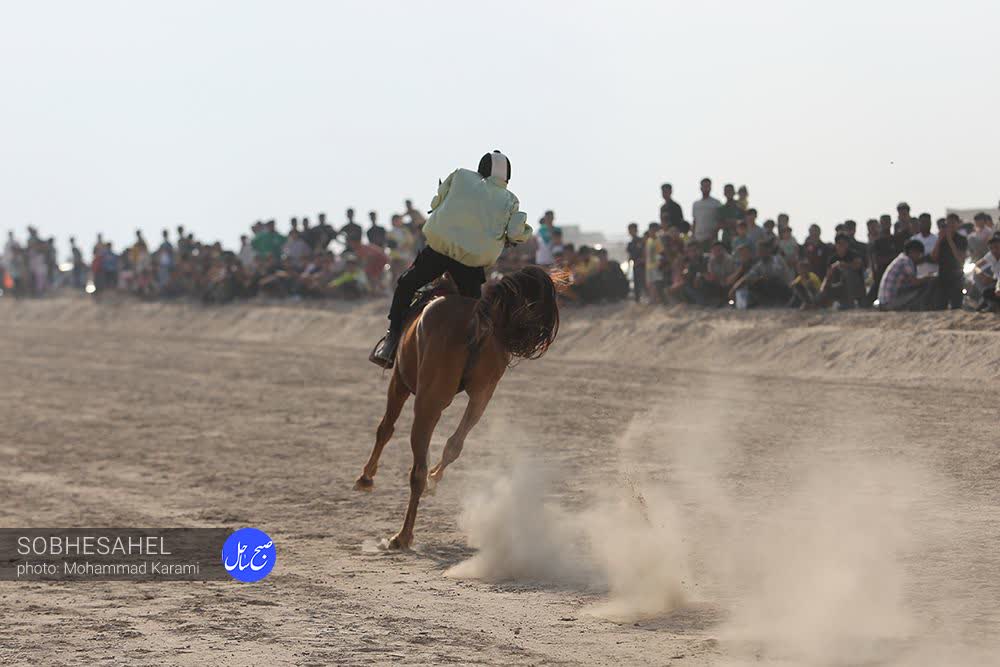 به مناسبت ولادت حضرت علی (ع)، جمعه گذشته یکدوره مسابقات اسب دوانی در شهر بندر پل برگزار شد عکس: محمد کرمی- صبح ساحل