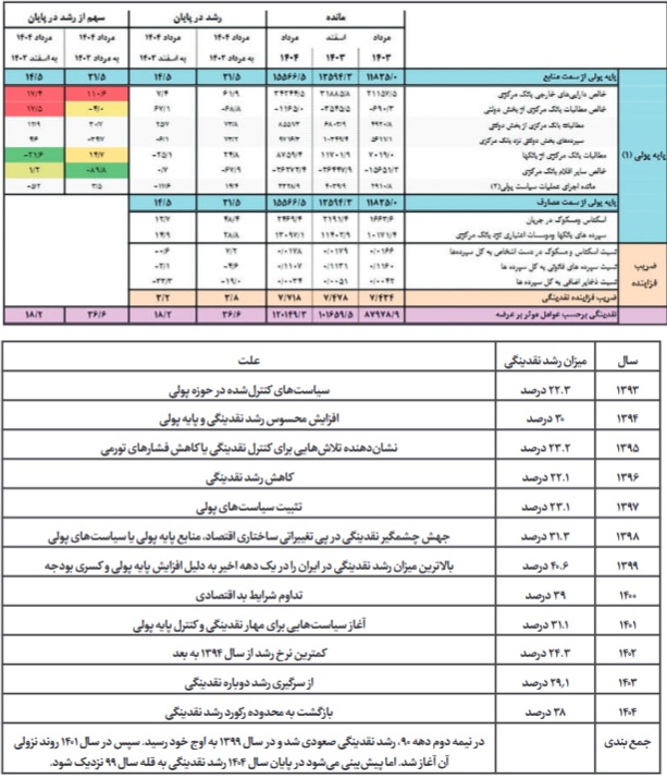 طبق آمار منتشرشده از سوی بانک مرکزی، نقدینگی در پایان بهار 1404، با رشد نزدیک به 32 درصد نسبت به بهار سال قبل، به رقم 11هزارو 58 هزار میلیارد رسیده است و دادهها نشان میدهد؛ پایه پولی و نقدینگی رشدی فراتر از انتظار داشتهاند. همچنین نرخ رشد نقدینگی در پایان پنجمین ماه سالجاری به ۳۶.۶درصد و نرخ رشد پایه پولی به ۳۱.۵درصدرسیده است.