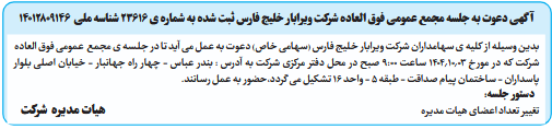 آگهی دعوت به جلسه مجمع عمومی فوق العاده