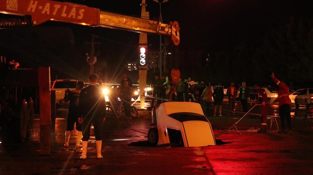 در پی بارندگی شدید در بندرعباس، نشست زمین در چهارراه «خانه نان» موجب ایجاد حفرهای در خیابان شد و یک خودرو درون آن سقوط کرد.