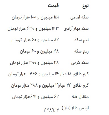 گزارشها حاکی از آن است که هر قطعه سکه امامی با افزایش ۳ میلیون و ۱۰۰ هزار تومانی به قیمت ۱۵۱ میلیون و ۱۰۰ هزار تومان رسید.