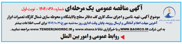 به این شرکت WWW.BAORCO.IR و یا خبرگزاری شانا www.shana.ir و www.TENDER@NIORDC.IR مراجعه نمایید .