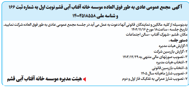 آگهی مجمع عمومی عادی به طور فوق العاده