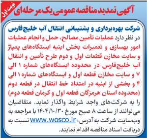 آگهی تمدید مناقصه عمومی یک مرحله ای نوبت اول