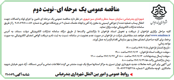 مناقصه عمومی یک مرحله ای-نوبت دوم