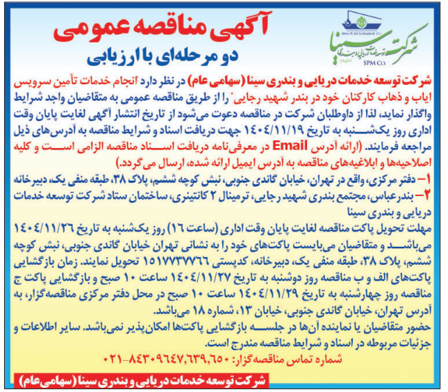 آگهی مناقصه عمومی دومرحله ای با ارزیابی