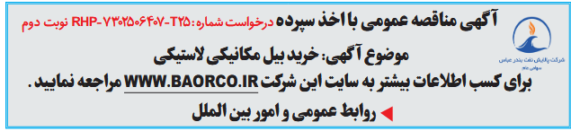 برای کسب اطلاعات بیشتر به سایت این شرکت WWW.BAORCO.IR مراجعه نمایید .