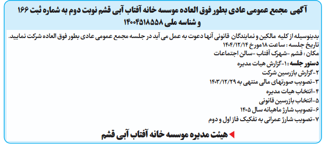 آگهی مجمع عمومی عادی بطور فوق العاده نوبت دوم