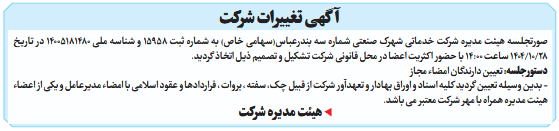 آگهی تغییرات شرکت صورتجلسه هیئت مدیره