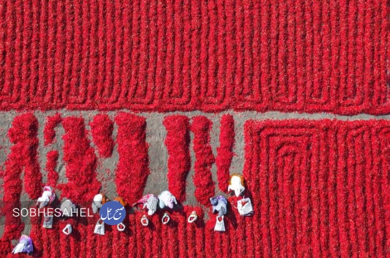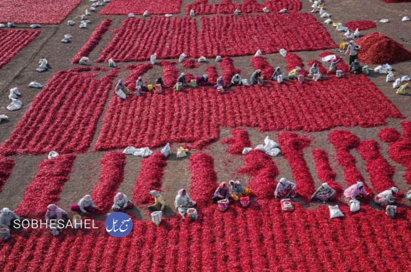 گزارش تصویری زیر مربوط به خشک کردن فلفل قرمز در هندوستان است.
