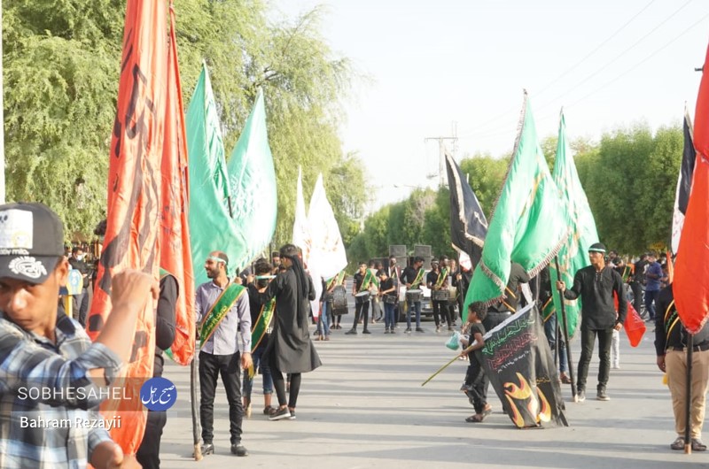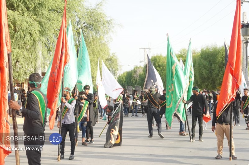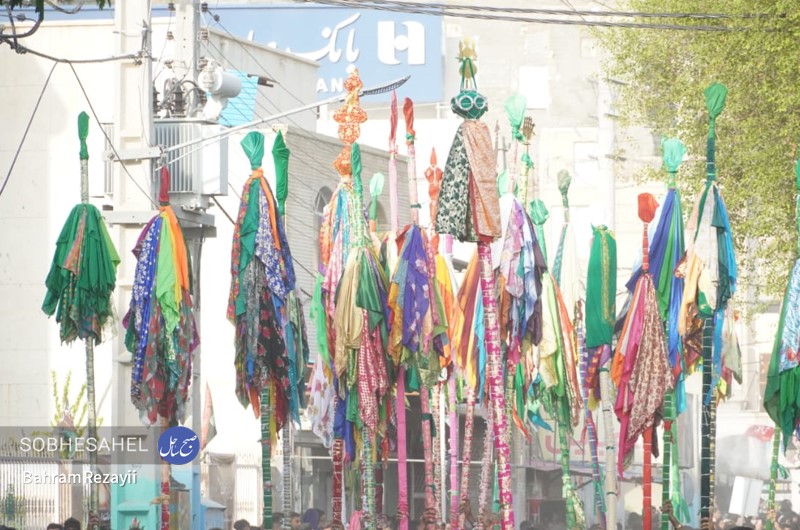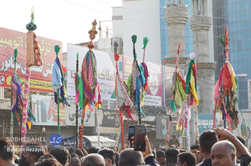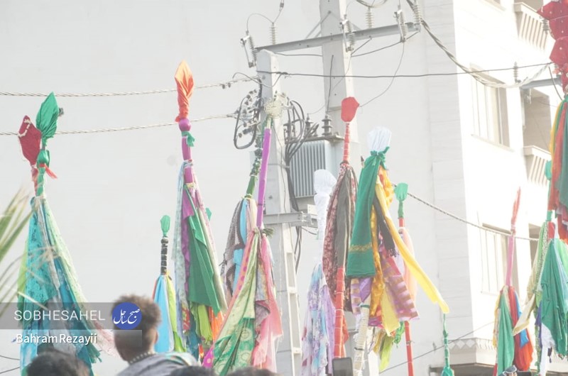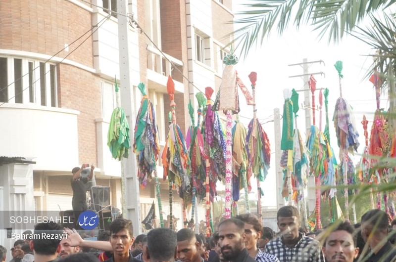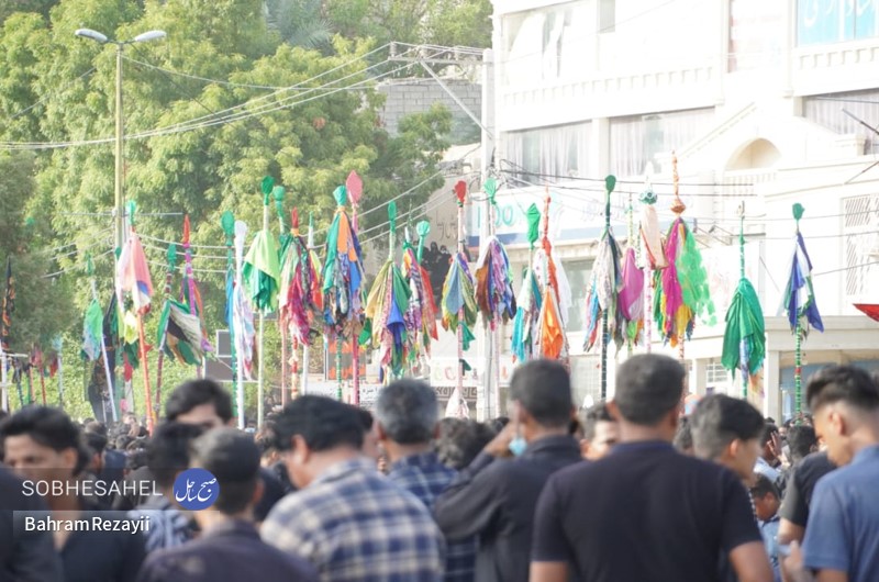 آیین علم گردانی قدمت آن به 400 سال قبل بر می گردد و هر ساله، هم زمان با روز پنجم محرم الحرام در شهر میناب برگزار می شود. آیین علم گردانی هر ساله در روز پنجم محرم الحرام با حضور جمع کثیری از مردم شهرستان میناب برگزار می شود. بنا به گفته های ساکنین میناب، قدمت این مراسم بین 376 تا 400 سال است. علم های صاحب الزمان(عج)، رسول الله، امام حسن(ع)، زین العابدین، امام رضا(ع)، دو علمان و حضرت ابوالفضل(ع)، از علم های هستند که در این مراسم شهرت بیشتری دارند. علم ها، در روز پنجم محرم الحرام با حضور مدیحه سرایان و افرادی که دارای شهرت و اعتبار مذهبی هستند با گلاب ناب و صلوات شستشو داده می شوند. کار شستن علم ها از صبح آغاز و تا قبل از اذان ظهر ادامه دارد و در هنگام بستن علم ها مدیحه سرایان چاوش خانی می کنند. علم پیغمبر و صاحب الزمان(عج) در بین مردم مورد توجه بسیاری قرار دارند؛ به طوری که در هنگامی که علم ها در خیابان در حرکت هستند قبل از رسیدن علم ها اقدام به قربانی کردن گوسفند، پاشیدن گلاب، گل، نقل و نبات و پخش شیرینی می کنند. علم ها از شاخه های درخت لور درست می شوند که بعد از شستن، آن ها را با پارچه هایی به رنگ قرمز و سبز می پوشانند و بعد از اتمام کار، برای زیارت و تبریک وارد حسینیه می شوند. گفتنی است علم ها با پارچه های که اغلب به رنگ های قرمز و سبز هستند، بسته می شوند. مراسم علم گردانی در بین مردم میناب شهرت بسیاری دارد به طوری که مینابی های ساکن شهر های دیگر کشور و کشور های حاشیه خلیج فارس، در این مراسم حضور پیدا خواهند کرد. آیین علم گردانی از حسینیه ماتم قلعه شروع می شود به صورتی که با آمدن علم صاحب الزمان(عج) و توقفی کوتاه صورت می گیرد تا بقیه علم ها از جای جای مختلف شهر به آنجا بیایند، علم صاحب الزمان(عج) جلو و بقیه علم ها یک به یک پست سر هم از میدان استقلال به سمت میدان شهدا حرکت می کنند. مردم همرام با حرکت علم ها در مسیر بلوار امام خمینی(ره)، خیابان شهید جهانگیر امینی و میدان ولایت به سمت حسینیه لب رودخانه به صورت دسته های عزاداری به سینه زنی می پردازند. به هنگام رسیدن مردم به حسینیه لب رودخانه سیل خروشان مردم در قالب دسته های عزاداری در محل حسینیه لب رودخانه تا پیش از نماز مغرب به عزاداری خواهند پرداخت. عکس از بهرام رضايي