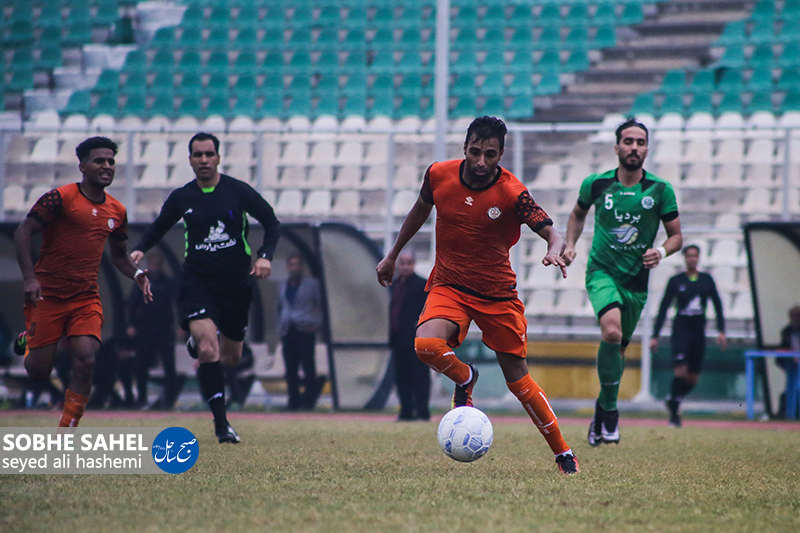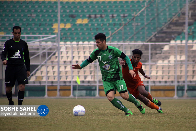 تیم فوتبال شهرداری بندرعباس در مسابقات لیگ دسته دوم کشور توانست تیم صدر نشین چوکای تالش را در بندرعباس با تساوی بدون گل متوقف کند . / عکس : سید علی هاشمی /