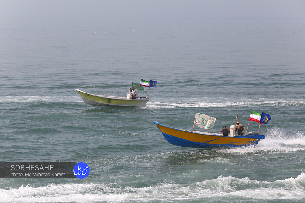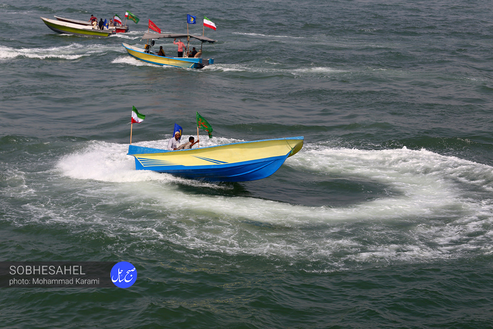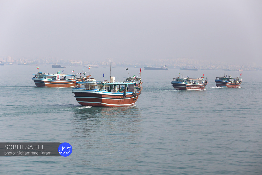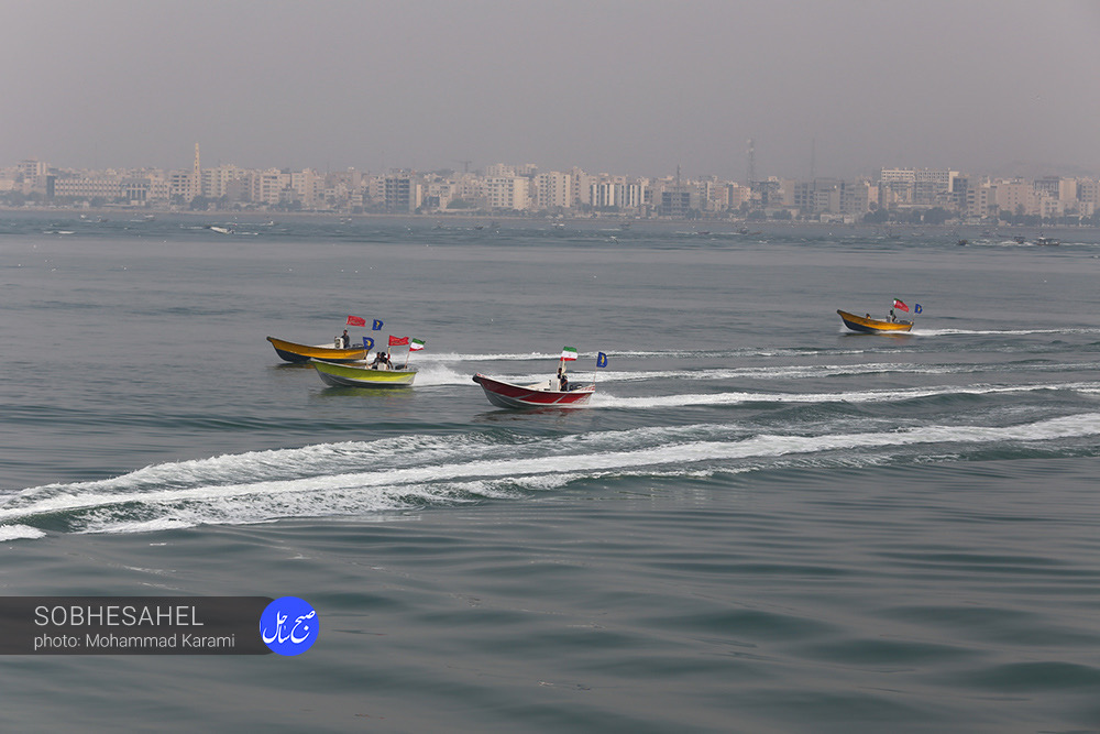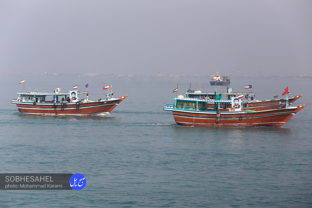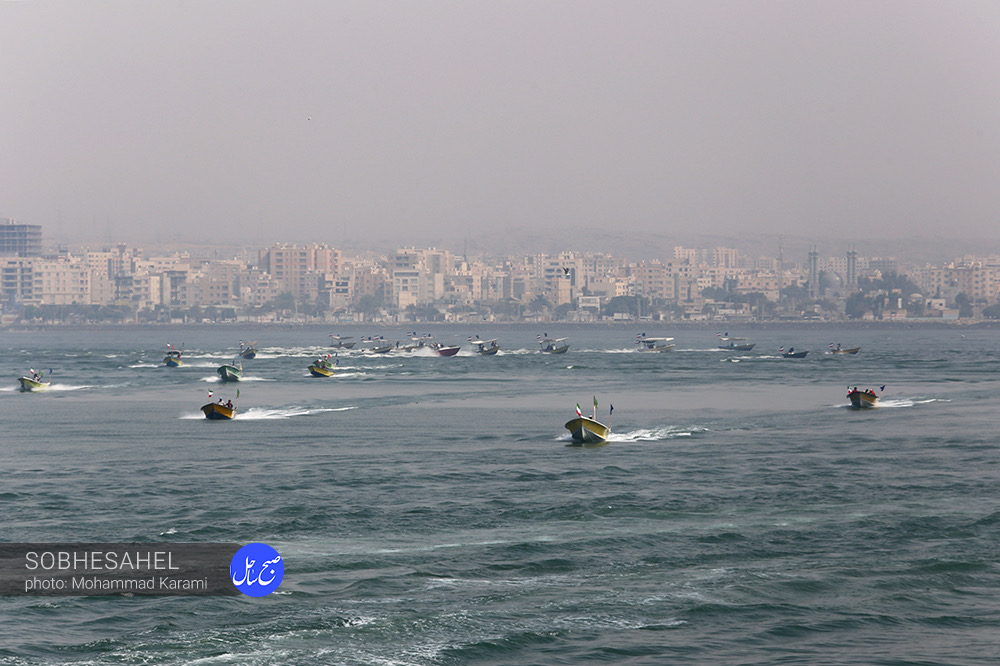 رژه دریایی به مناسبت هفته دفاع مقدس در آبهای خلیج فارس برگزار شد. عکس: محمد کرمی