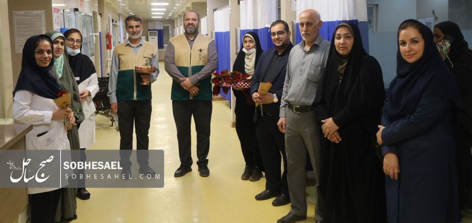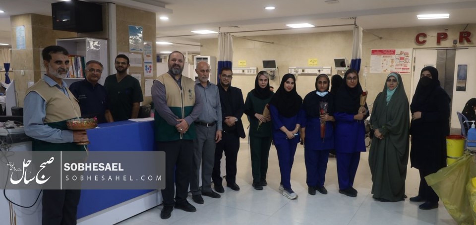 دیدار اعضای ستادی و جمعی ازخادمیاران و یاوران کانون های خدمت رضوی بنیاد کرامت آستان قدس با همراهی اعضای شورای شهر بندرعباس به مناسبت ولادت حضرت زینب(س) در بیمارستان شهید محمدی از پرستاران بخش های مختلف دیدار و با تقدیم هدیه متبرک و دست گل تقدیر کردند