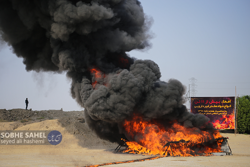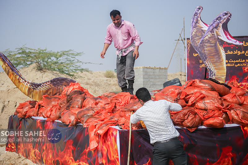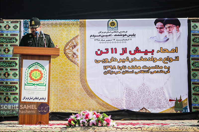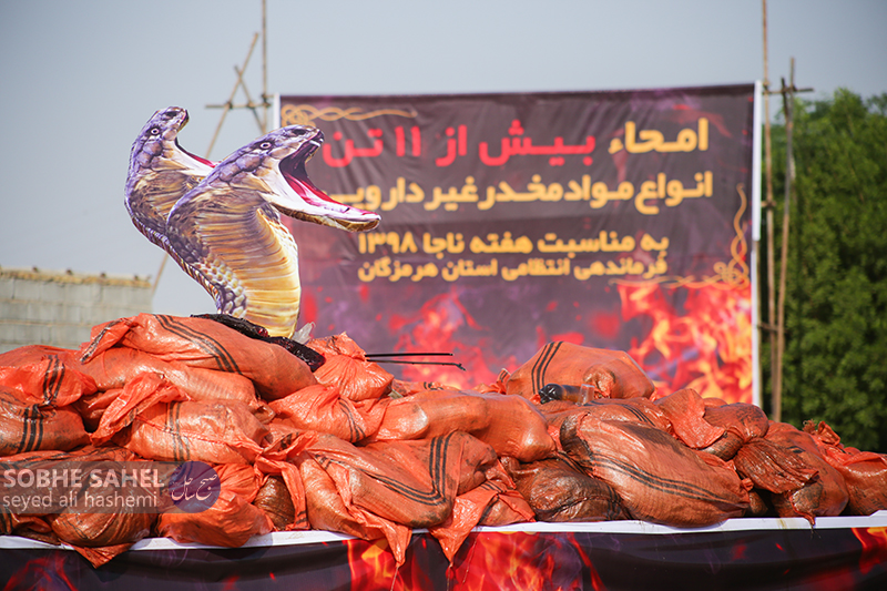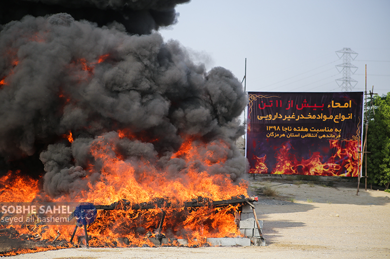 مراسم امحا بیش از 11 تن انواع مواد مخدر غیر دارویی با حضور فرمانده نیروی انتظامی استان هرمزگان در بندرعباس برگزارشد . عکس : سید علی هاشمی